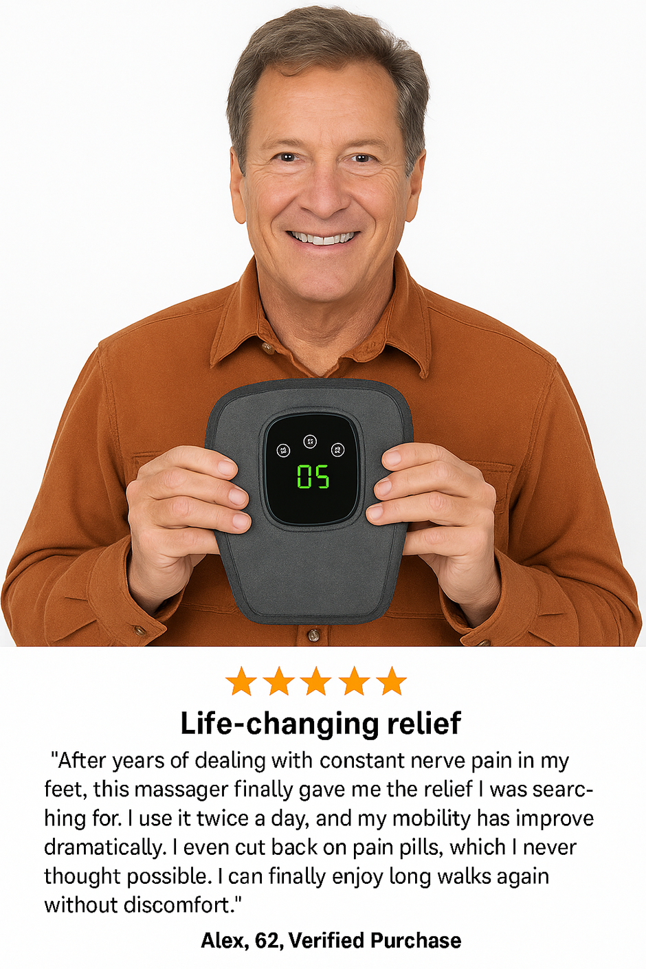 This "Triple Method" combines soothing heat, therapeutic massage, and targeted compression which helps kickstart blood circulation, allowing the nerves in your feet to receive the oxygen they need to recover.